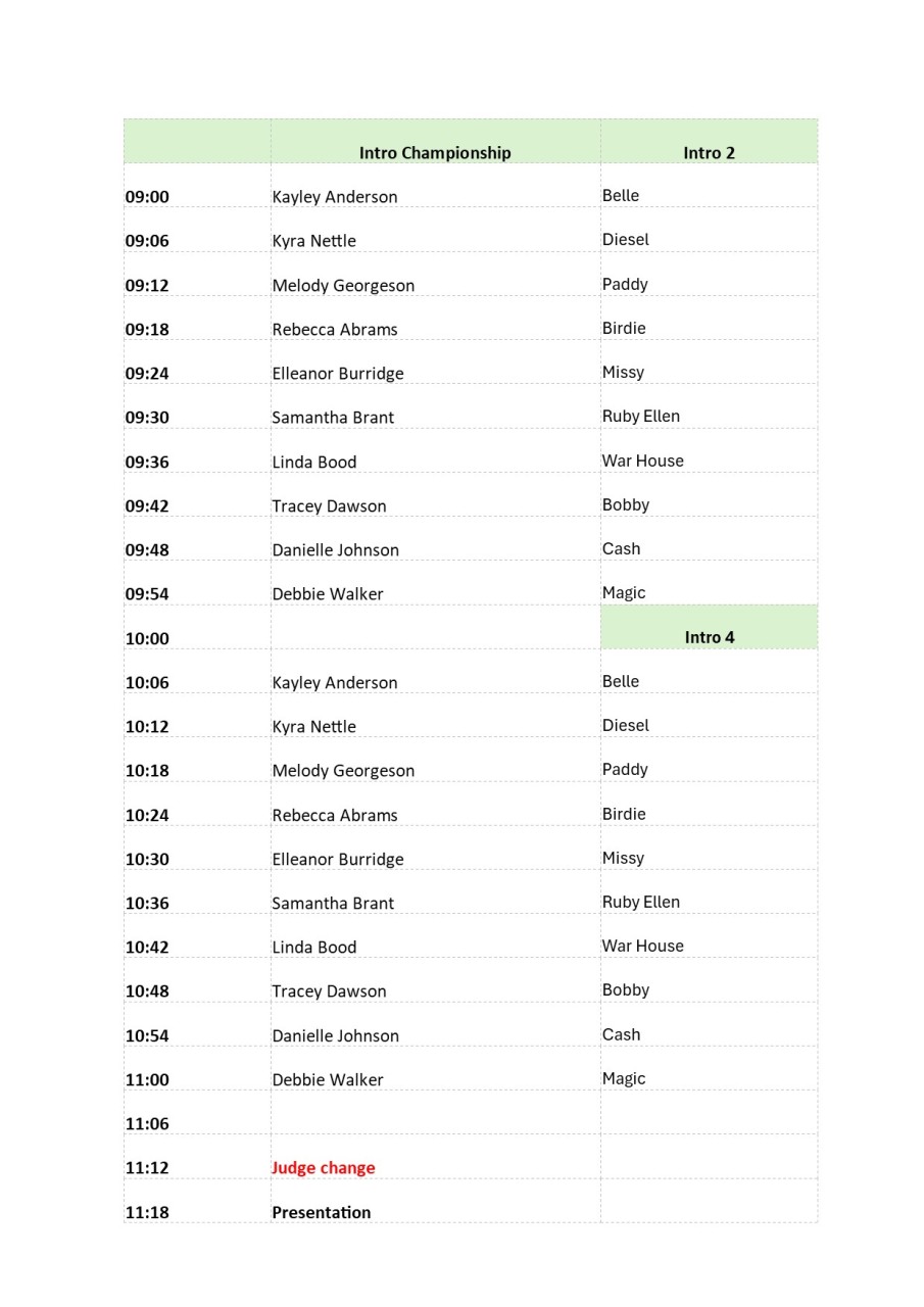 22nd March 2026 Times for Dressage Championships at LRAC, Kenwick