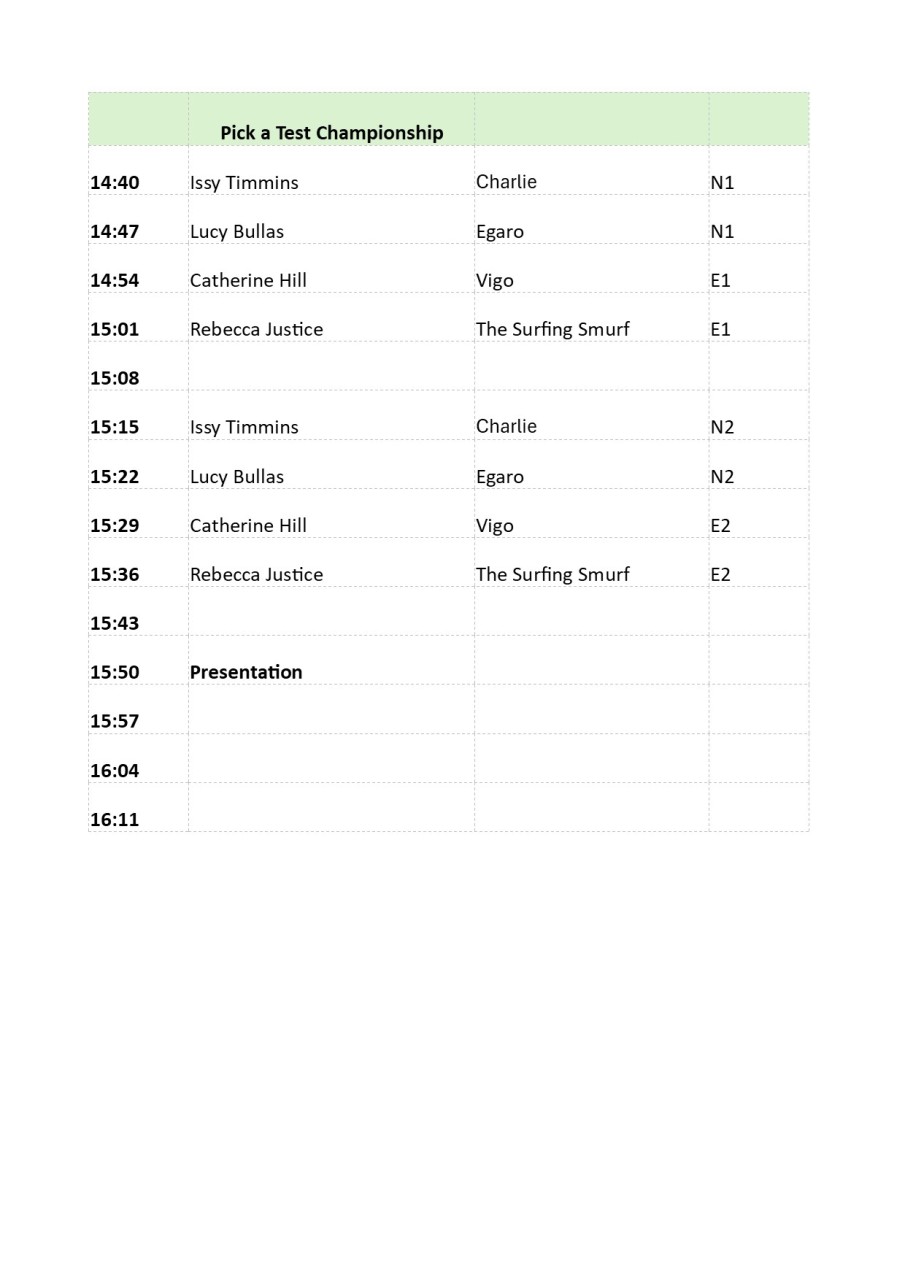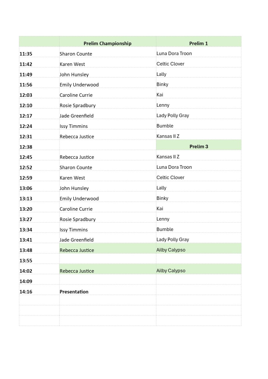22nd March 2026 Times for Dressage Championships at LRAC, Kenwick